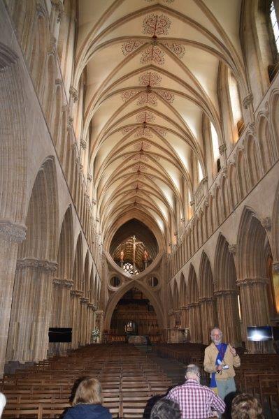 Next we drove on to Wells, which in contrast is very upmarket and almost staid, and serious. The Cathedral was a pure delight, they dont charge entry, just suggest a donation, and dogs are allowed in, which is a first for us.