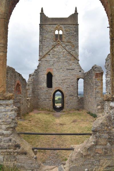 As the weather was threatening rain we didn’t climb the steep hill to Glastonbury Tor, so on our return back to the Barn we stopped at Burrow Mump, a smaller hill to climb. I’m sure this ruin is very atmostpheric at night. you can just make out Glastonbury Tor in the far distance.
