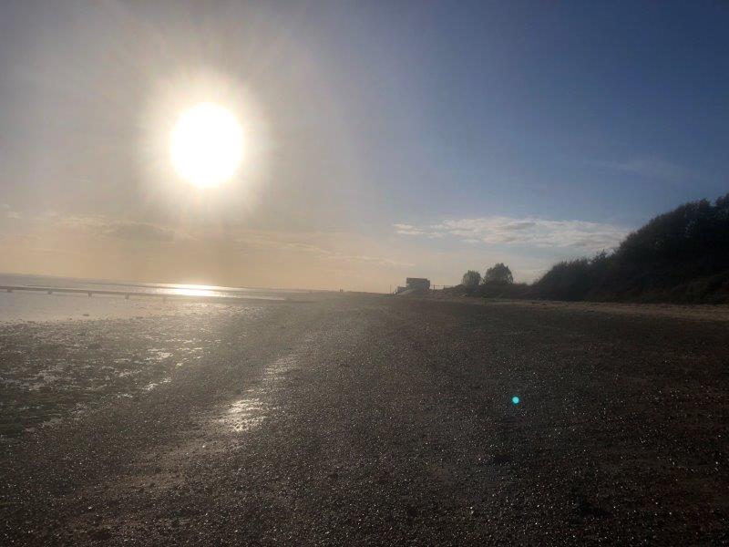 The sun was dropping as we walked towards the town of West Mersea.