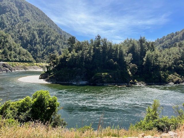 The road continues down the coast with routes around river estuaries. If you’ve never travelled NZ roads before, they are a delight. Hardly any traffic, speed signs to tell you how fast you can take the bends, and passing places every few km.