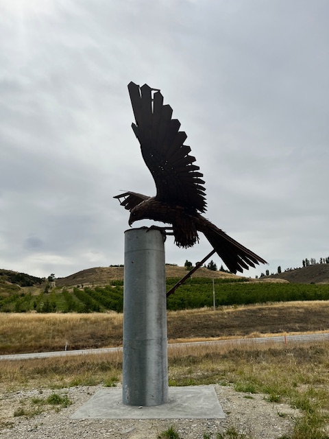 Our next drive took us across to the east coast, stopping in Clyde to capture the wonderful Karearea recycled-metal sculpture.