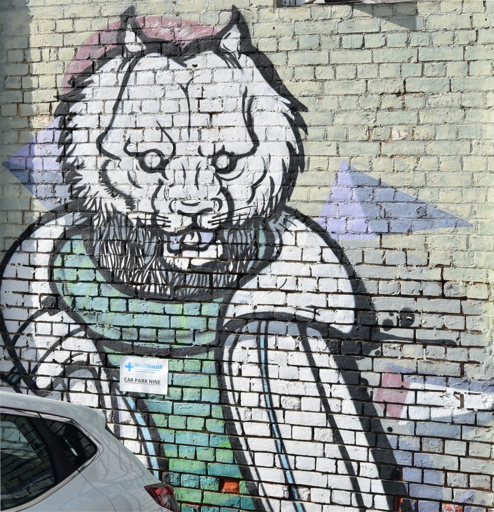 On Friday, before we set off north, we drove down into town and parked up, then I quickly walked around finding some street art. I love these bright displays of talent cheering up blank walls.
