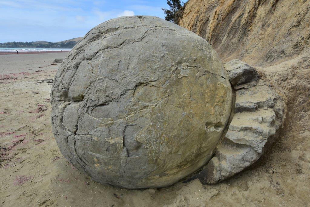 These huge spherical boulders look alien and unnatural sat on an ordinary beach.