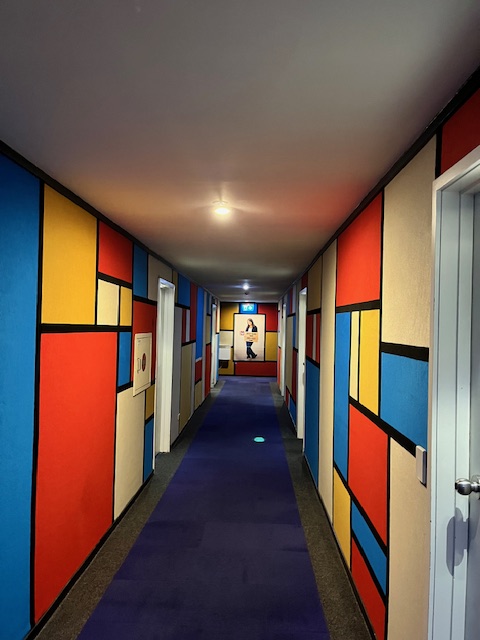 Our hotel for that night was the Grosvenor. Timaru is a strange town, sat alongside the port, and this hotel is not far from the sea. The corridors are decorated with Mondrian and other art styles, and it has a hip vibe about it.