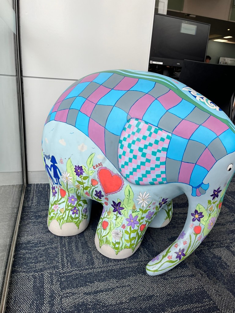 On Sunday we walked into the city, and came across the first of the Elmer Elephants on the trail, for which I’ve done a separate blog.