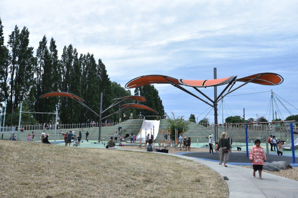 On our way back to the motel we came across the incredible Margaret Mahy Playground, built on land left derelict by the earthquake. On a glorious Sunday, it was full of very happy children enjoying the huge complex of climbs, slides, fountains etc. The playground cost over $40m but is certainly one of the best features of the city.